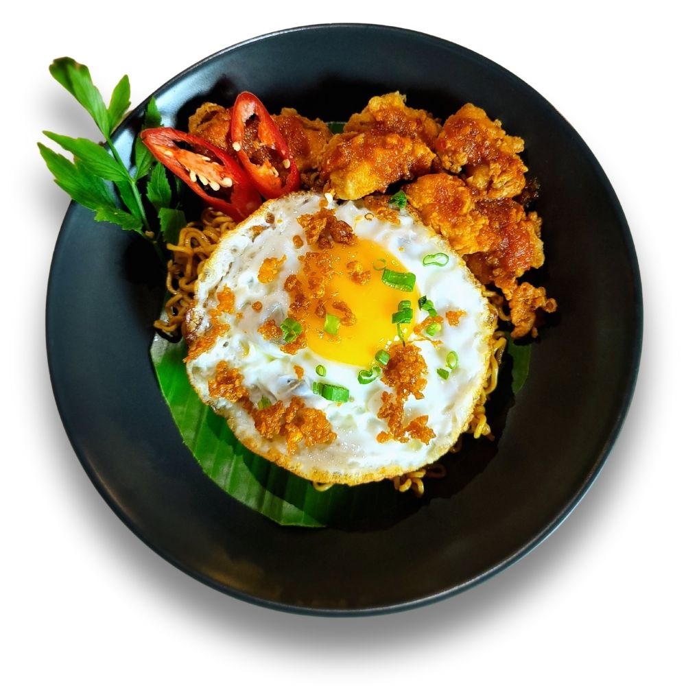 Our signature “Miker” dry noodles stir-fried with a well-balanced seasoning, served with a sunny-side-up egg and diced berlado chicken. A simple yet flavourful combination that’s truly satisfying.